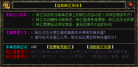 100YSF游戏全自动转区系统! 1、无需人工干预,即可自行完成所有游戏区服之间的转区操作! 2、并且可以直接免费(无人任何限制)领取转区的充值!