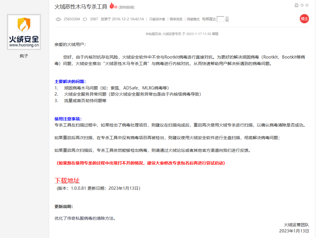 火绒安全卫士下载地址:https://www.huorong.cn/